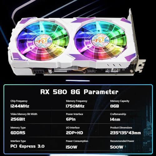 RX 580 8G Graphic Cards (with RGB Fans) Gaming Gpu Card, Real 8GB, 2048SP, GDDR5, 256 Bit, Pc Gaming Video Card, 2XDP, HDMI, PCI Express 3.0,Freeze Fan Stop for Computer