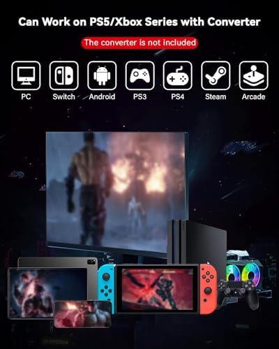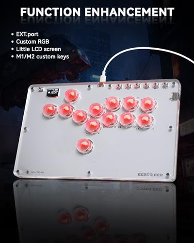 Custom RGB Design:This is a transparent acrylic material with RGB lighting effect,an enlarged style arcade keyboard with 13 buttons, providing a comfortable feeling and allowing you to enjoy fighting games. Buyers can create their own skins to make the controller look cooler and more personalized