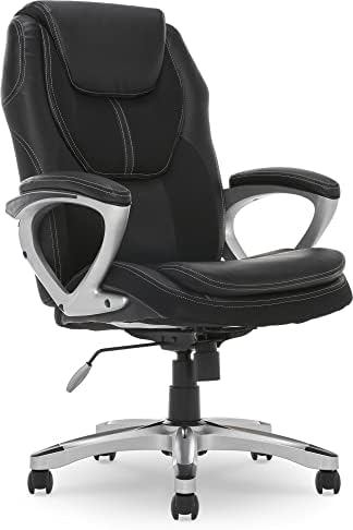 Serta Executive Office Padded Arms, Adjustable Ergonomic Gaming Desk Chair with Lumbar Support, Faux Leather and Mesh, Black