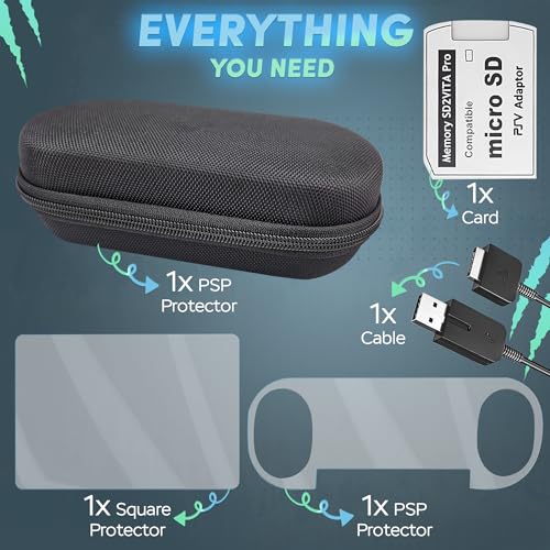 Skywin Four-in-One Kit For PS Vita Case, Protector, Adapter Charger, and Micro SD Memory Card – Compatible with PS Vita Accessories 1000 / 2000 3.6 or HENkaku System