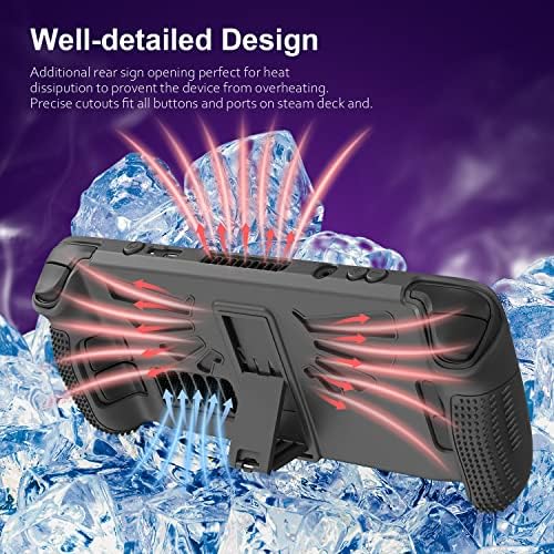 【Compatible for Valve Steam Deck】:Steam deck kickstand case and thumb grip caps are moulded with the real steam deck console. Precise cutouts fit all buttons and ports on steam deck. The protective cover only compatible with any version valve steam deck. Notice: Steam deck is not included.