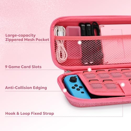 【Full Protection】Our Sequins pink switch carrying bag combines waterproof and dustproof features with a soft microfiber inner plate, ensuring your Switch console remains scratch-free. Pair it with the matching glitter shiny switch carry case, equipped with ergonomic grips, for the ultimate gaming protection and style