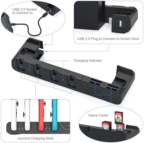 Switch Controller Charger Dock Compatible with Nintendo Switch & Switch OLED Model Joycons, MLIFEMFUL Switch Joycon Charging Dock Charges up to 6pcs Joycon with Game Card Storage Joycon Charger Stand