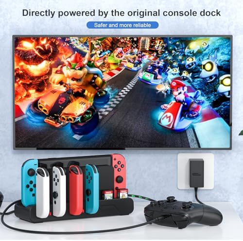 Switch Controller Charging Dock Station is powered by the Switch TV Dock and is perfect for Nintendo Switch Original & Nintendo Switch OLED Model, as well as storing gaming accessories like joycons, game cards, and controller! Designed for game enthusiasts, and it is the perfect gaming gifts for men!