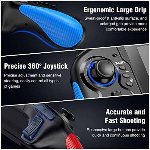 Switch Controller for Switch/Switch OLED, Rechargeable Plug-in Switch Controller, One Piece Ergonomic Grip Switch Controller for Handheld Mode with Turbo,Dual Vibration,6-Axis Motion Control,Red-Blue