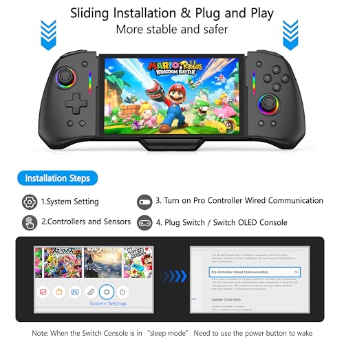 Switch Controllers for Nintendo Switch/OLED, RREAKA Upgraded Full-Size Ergonomic Handheld Mode Nintendo Switch OLED Controller, One-Piece Wireless Switch Joypad with RGB/Turbo/Motor Vibration