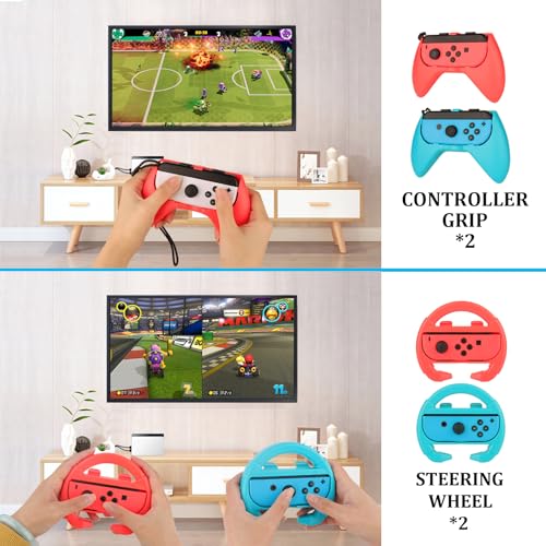 【Durable & Easy to Use】All accessories in the set are made of ABS plastic material, lightweight, ergonomic and easy to use. These attachments can work well with your Switch/OLED Joy-Cons. You can play various online sports games and exercise with friends and family more convenient and comfortable with this 23 in 1 swtich sports accessories bundle. All accessories can be used with Joy-Cons without signal delay when you play the games.