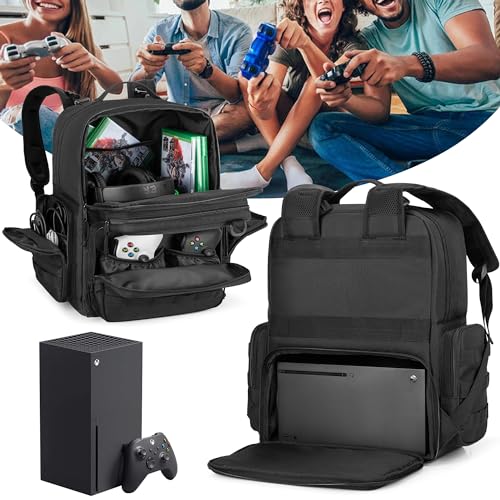 Travel Tactical Backpack Compatible with Xbox Series X / S Console Carrying Case Bag with Individual Room for Console, Plenty of Pockets for Controllers, Headphone and More(Patent Design)