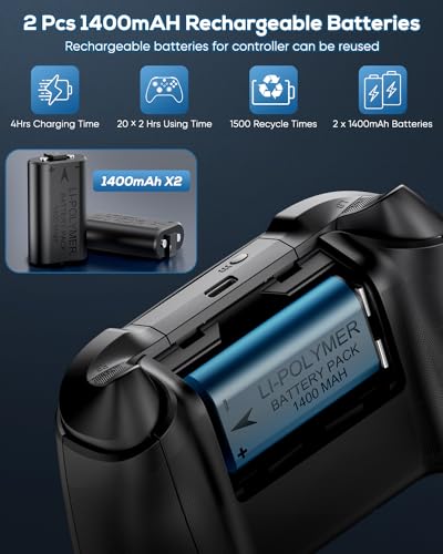 【Safe Dual Controller Charging System】—-Charger dock for Xbox Series X is designed with smart chip to provide over current/over voltage/over heat protection for your controllers. Indicator lightgreen is full charge/standby status, red is charging status. Equipped with 2 x 1400mah batteries, it can fully charge 2 controllers for Xbox Series X at the same time within 3.5 hrs. Only supports the original battery and batteries we provided, not for other battery pack. NOT COME WITH CABLE.