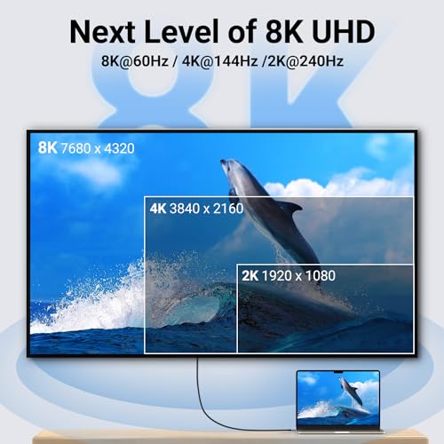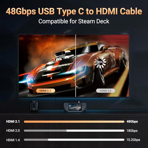 Future 8K UHD Visual Feast: This 8K USB Type C to HDMI Cord / USB C to HDMI 2.1 Cable supports high resolutions up to 8K@60Hz and backward compatible with 5K @120Hz, 5K@60Hz, 4K@144Hz, 4K@120Hz, 4k@60Hz, 2K @240Hz, 2K@165Hz, 2K@240Hz. Ultra-high refresh rate will SteamDeck, maximize graphics card and monitor performance and avoid artifacts or jamming during ensemble gaming or video editing.*Note: MacBook series only supports 4K@60Hz at max when connected to any USBC to HDMI cables due to limitations of the macOS system itself.