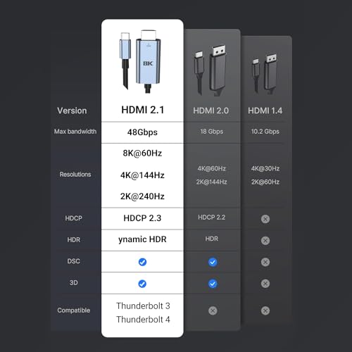This Type C to HDMI Cord with 48Gbps compatible backward with HDMI2.0(18Gbps), HDMI1.4(10.2Gbps).