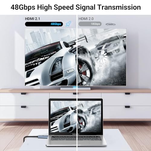 USB C to HDMI 2.1 Cable with High Refush Rate and Low Latency: