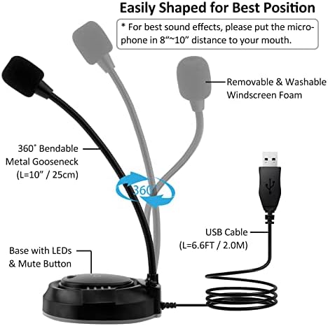 Mute Button and LED Switch – You can easily mute the microphone by pressing the round button on the base. The LED backlight will be turned off when microphone is mute, so you can identify the microphone status clearly.