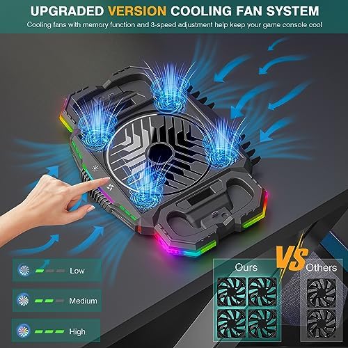 【BUILD YOUR PLAY STYLE】The cooling fan stand to change the RGB color lights with 14 different effects modes, including 5 dynamic light modes + 7 static light modes + long touch-switch to turn off + light touch-switch reboot memory mode. The color LED lights are a nice addition at night and are relaxing to watch and add to a fashionable game room.