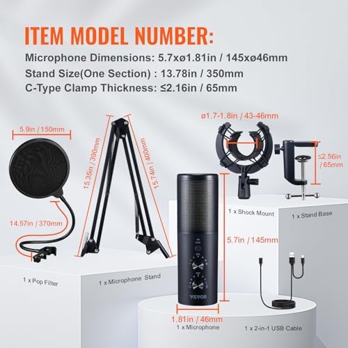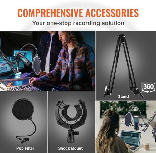 Be the first to review “VEVOR USB Microphone, 192 kHz/24-bit, Professional Condenser Microphone Kit with Boom Arm Stand Pop Filter Shock Mount, 11 RGB Lighting Effects Mute Button Headphones Jack for Recording Gaming Singing”