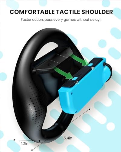 Ideal steering wheel compatible with nintendo switch joycon controller, a more ergonomic shape makes it easier to hold in hand. Trigger shoulder corresponding with – & + buttons, every your action won’t be miss and delayed.