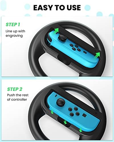 VOYEE Steering Wheel Compatible with Nintendo Switch Wheel, Family Use Accessories Compatible with Switch JoyCon Controllers, 2 Pack (Black and Black)