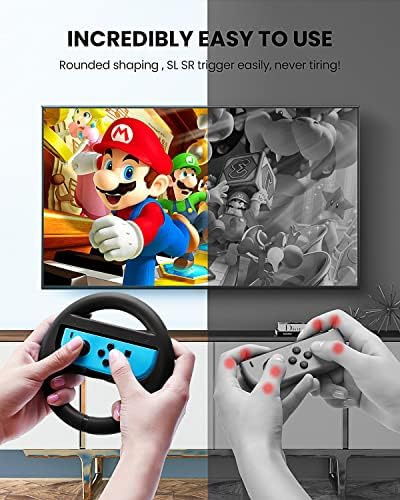 【UNIVERSAL COMPATIBILITY】VOYEE steering wheel compatible with switch joycon,which has better hand grip feeling and works perfectly for ALL interactive games like Mario Kart 8 Deluxe, Snipperclips and so much more!