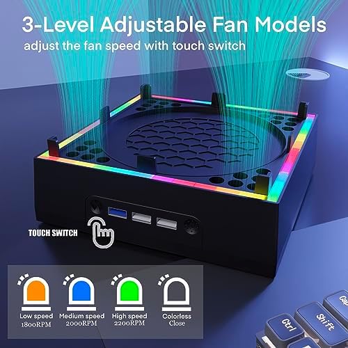 【Colorful Light Strip】Do you want to create a gaming atmosphere for your computer desk or living room? The cooling stand for xbox series x supports colorful RGB lights that can be changed with a separate touch switch. There are 7 lighting modes, and the light strip has a memory function. When it is turned off and turned on again, it retains the previous color, and can also operate separately when the fan is turned off. You can change the color effects to achieve the atmosphere you want.