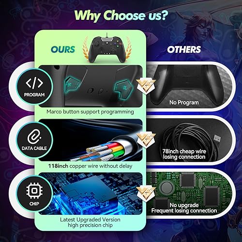 Wired Controller for PC/Steam/Android(Phone/Tablet/TV Box/Laptop)/Switch/Tesla, 10ft USB Switch Pro Controller Gaming Controller Gamepad Joystick with Dual-Vibration, Turbo,Macros,No Battery Required