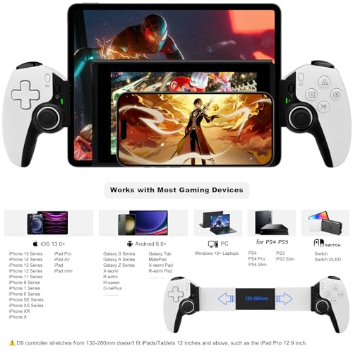 Wireless Controller for iPad, Tablet, iPhone/Android/PC/Switch/PS3/PS4 Gamepad Joystick with Turbo, Supports Mobile Cloud Game, Streaming on PS5/PS4/Xbox/PC, iPhone 15/14, COD