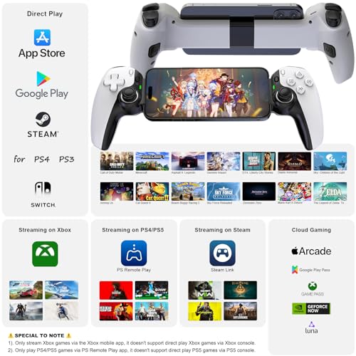 ๐ฑ๐ฎTurn Your Phone Into a Gaming Console: Megadream mobile controller supports streaming on PS5/PS4, Xbox Series/Xbox One and PC console. With PS Remote Play/ Xbox/ Steam Link App, launch games installed on your console from your phone. As long as your console is connected to power and the internet and powered on, you can start new games or jump back in from virtually anywhere in the world.