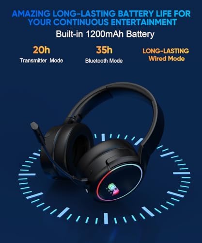 【Long lasting battery life】: 1200mAh battery capacity, long lasting battery life, 20 hours of wireless use in 2.4 GHz transmitter mode, 35 hours of wireless use in Bluetooth mode, and wired mode for long lasting use. With the large battery capacity, you can immerse yourself in gaming and entertainment to your heart’s content.