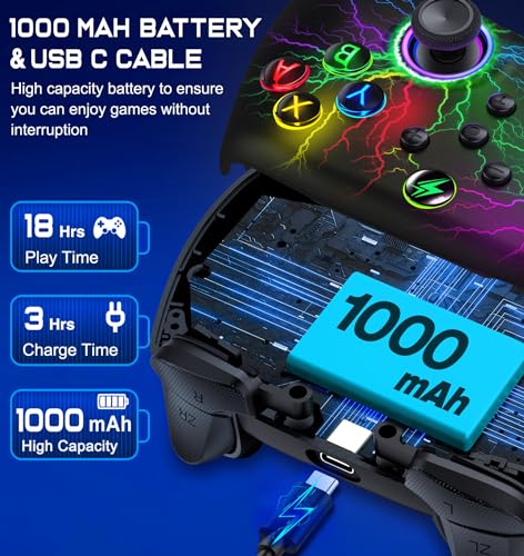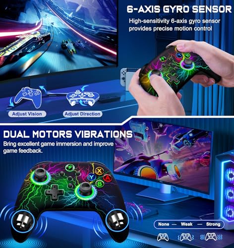 Wireless Switch Pro Controller for Nintendo Switch Controller/Lite/OLED, Cool RGB Wired PC Game Joysticks-Wireless iOS/Android Remote with LED Light/Programmable Nintendo Switch Accessories