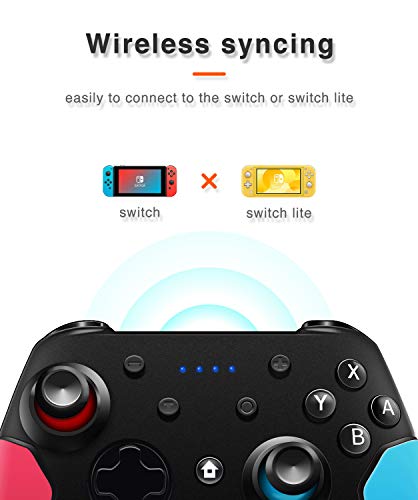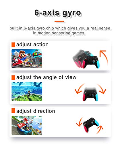 Wireless Connection and 6-axis gyro This switch controller is compatible both with Switch and Switch Lite,and it can be connected with Switch console via Bluetooth.It has a built-in 6-axis gyro,and it can support position and precise control,fast start/stop movement, which can help you improve the accuracy and speed of the game.