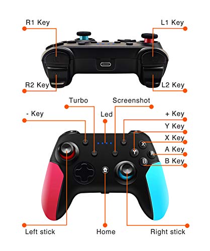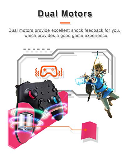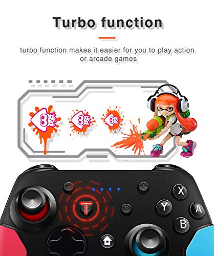 Wireless Switch Pro Controller for Nintendo Switch with Adjustable Turbo Function,Dual Vibration Function,Gyro 6-Axis and High Battery Life. Remote Gamepad Joystick for Switch Console, Red&Blue