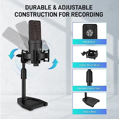 XLR Microphone Professional Cardioid Gaming Mic Kit with Desktop Stand,Shock Mount,Pop Filter,PC Computer Studio Condenser Microphone for Podcast Recording,Streaming,Voice Over,ASMR,YouTube