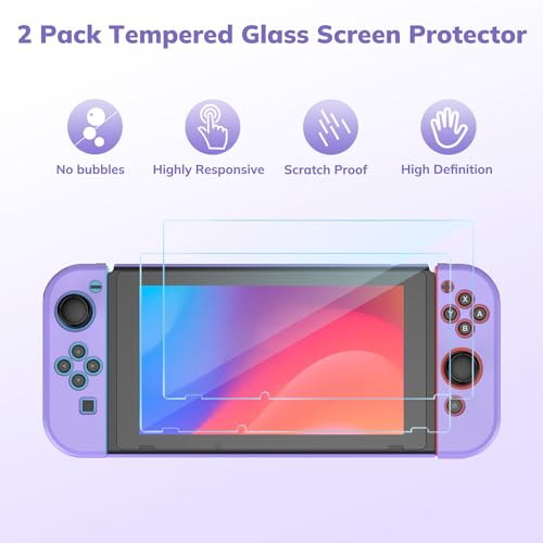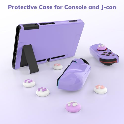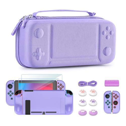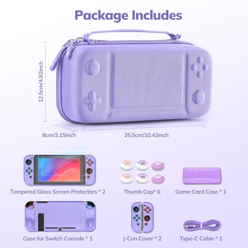 Younik Switch Case for Switch 2017, 14 in 1 Accesseries Kit with Switch Carrying Case, Screeen Protector, Protective Covers, Thumb Grips Caps, Game Card Case and Type C cable (Purple, Button Pattern)